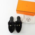 【ウィンターセール】希少 最高級 箱付き エルメス HERMES パリ H金具 ファー サンダル 38(24.5cm)//ブラック 黒 ミュール【2400013881258】
