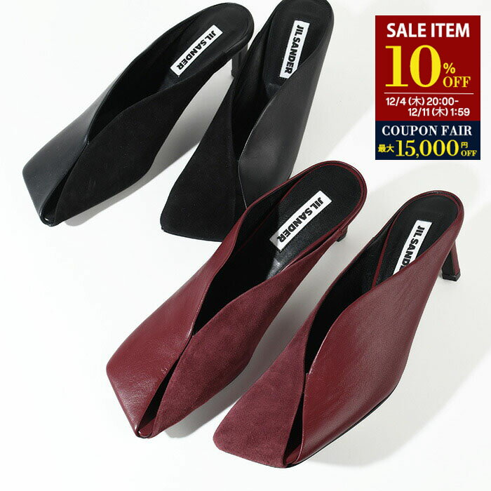 【10%OFF対象商品】JILSANDER ジルサンダー ミュール シューズ レザー スクエアトゥ ハイヒール J16WP0004 P6442 レディース ブラック ワインレッド ヒール ロゴ sstmcp