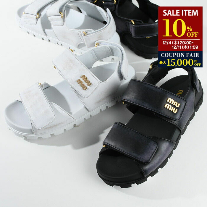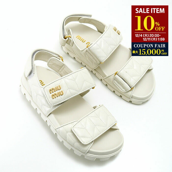 【10%OFF対象商品】MIU MIU ミュウミュウ シューズ スポーティ マテラッセレザー サンダル 5X135E 88 レディース ホワイト マテラッセ スポーツサンダル ロゴ