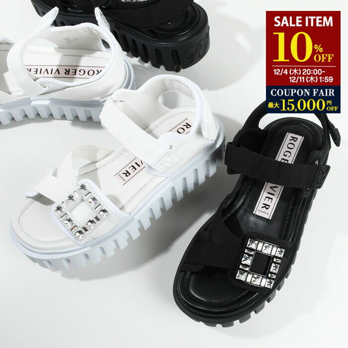 【10%OFF対象商品】Roger Vivier ロジェ ヴィヴィエ ヴィヴ ゴーシック トレッキー ストラス バックル テクニカル ファブリック サンダル RVW70637560T58 レディース ホワイト ブラック ビジュー ロゴ