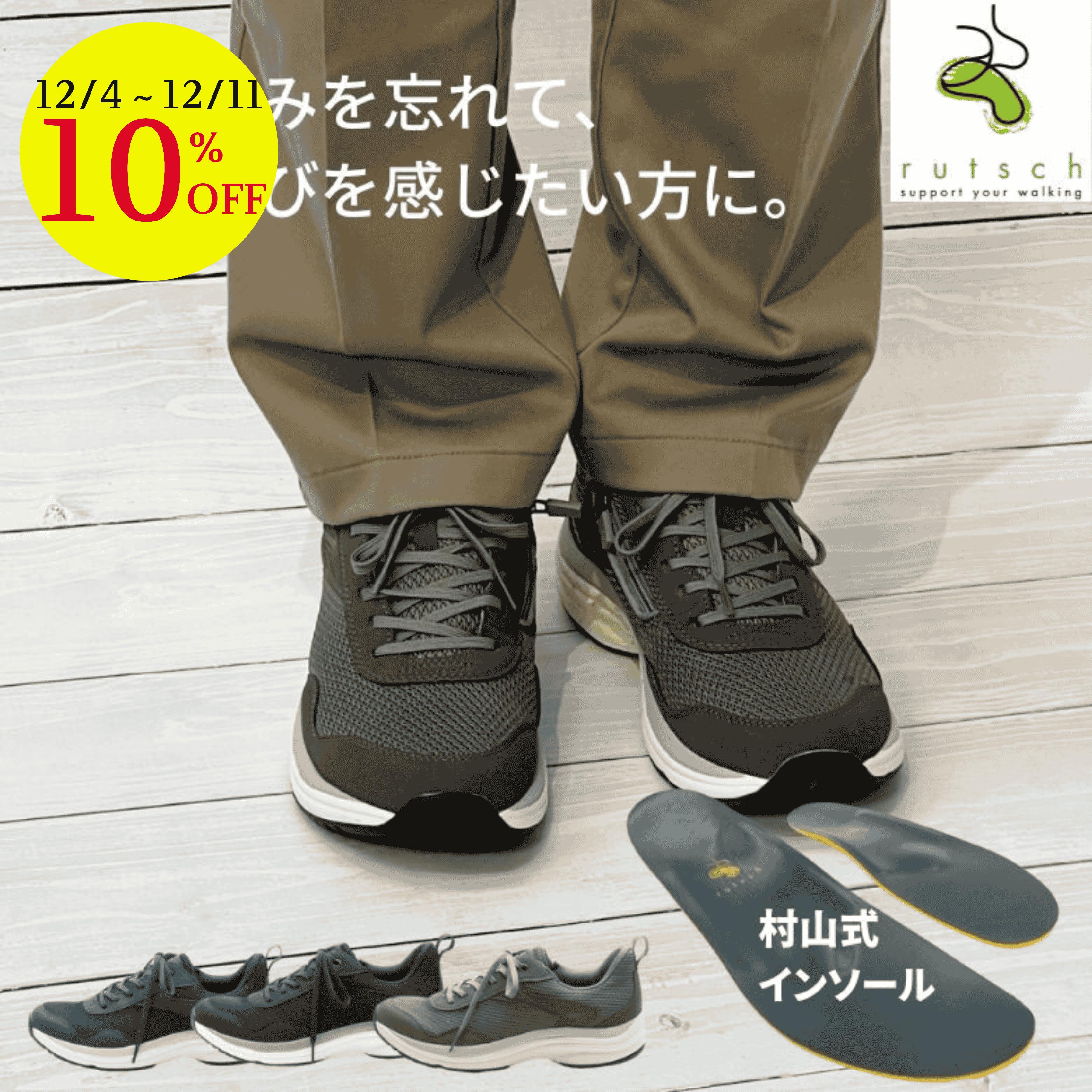 【12/4~決算SALE】 ウォーキング靴 ウォーキングシューズ 靴 スニーカー 歩きやすい靴 メディカルウォークと村山式インソールのセット ファスナー付き 膝の痛み O脚 立ち仕事 足底筋膜炎 メンズ ルッチェ