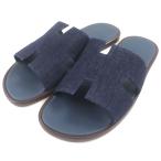 未使用品▼HERMES エルメス イズミール デニム レザー Hロゴ スライドサンダル インディゴ ネイビー 43 箱・保存袋付 イタリア製 メンズ