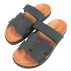 HERMES エルメス サンダル Chypre シプレ H222000Z メンズ カーフ レザー フラット Hカット ストラップ オープントゥ ロゴ 靴 ブラック
