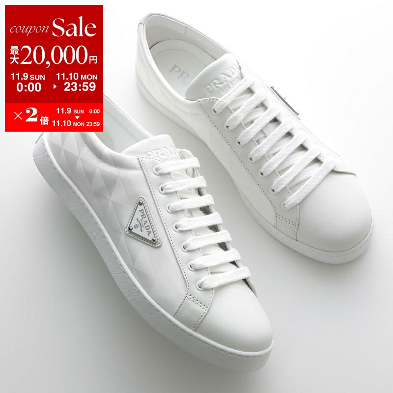 【11/9-11/10限定・最大2万円OFFクーポン配布中】PRADA プラダ スニーカー 2EE376 3LNW メンズ レザー ナイロン レースアップ ローカット トライアングルロゴ 靴 F0009/BIANCO【dc_kikaku】