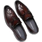 Uチップ フリンジタッセルローファー☆輸入革(牛革)【ビジネスシューズ/紳士靴/本革靴/皮靴/本革底/ローファー/ボートシューズ/メンズ/Men's/クロコダイル/ハンドメイド 】【商品名:lstylehomme No. 3101 ダークブラウン】