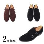 本革 メンズ スエード ダブル モンクストラップ ビジネスシューズ カジュアル ハンドメイド マッケイ製法 革靴