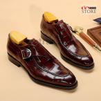 ビジネスシューズ Uチップ モンクストラップ クロコ型押し 紳士靴 革靴 シューズ メンズ