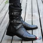 ブーツ メンズ 厚底 エンジニアブーツ ウエスタンブーツ 革靴 防水 サイドジッパー バイク用 ロングブーツ ベルト ジョッキーブーツ 24.0cm-27.5cm