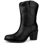 uxcell Allegra K カウボーイ ブーツ ブロックヒール ラウンドトゥ スリッポン レディース ブラック 25.5 cm