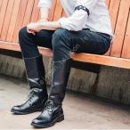 メンズ 靴 ブーツ エンジニア レースアップ カジュアル 防滑 サイドジップ 大きいサイズ 革靴 ロングブーツ 男性用 メンズシューズ ロングブーツ