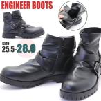 メンズブーツ メンズ エンジニアブーツ 本革 靴 サイドジップ サイドジッパー ミディアム ショート黒 ブラック スタッズ クロスベルト