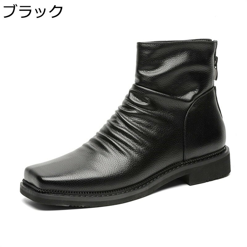 ショートブーツ 革靴 ハイカット メンズ エンジニアブーツ バックジッパー 防水 防寒 滑り止め 簡単脱着 スクエアトゥ 紳士靴 ビジネス カジュアル 秋冬用 バイクシューズ 通勤