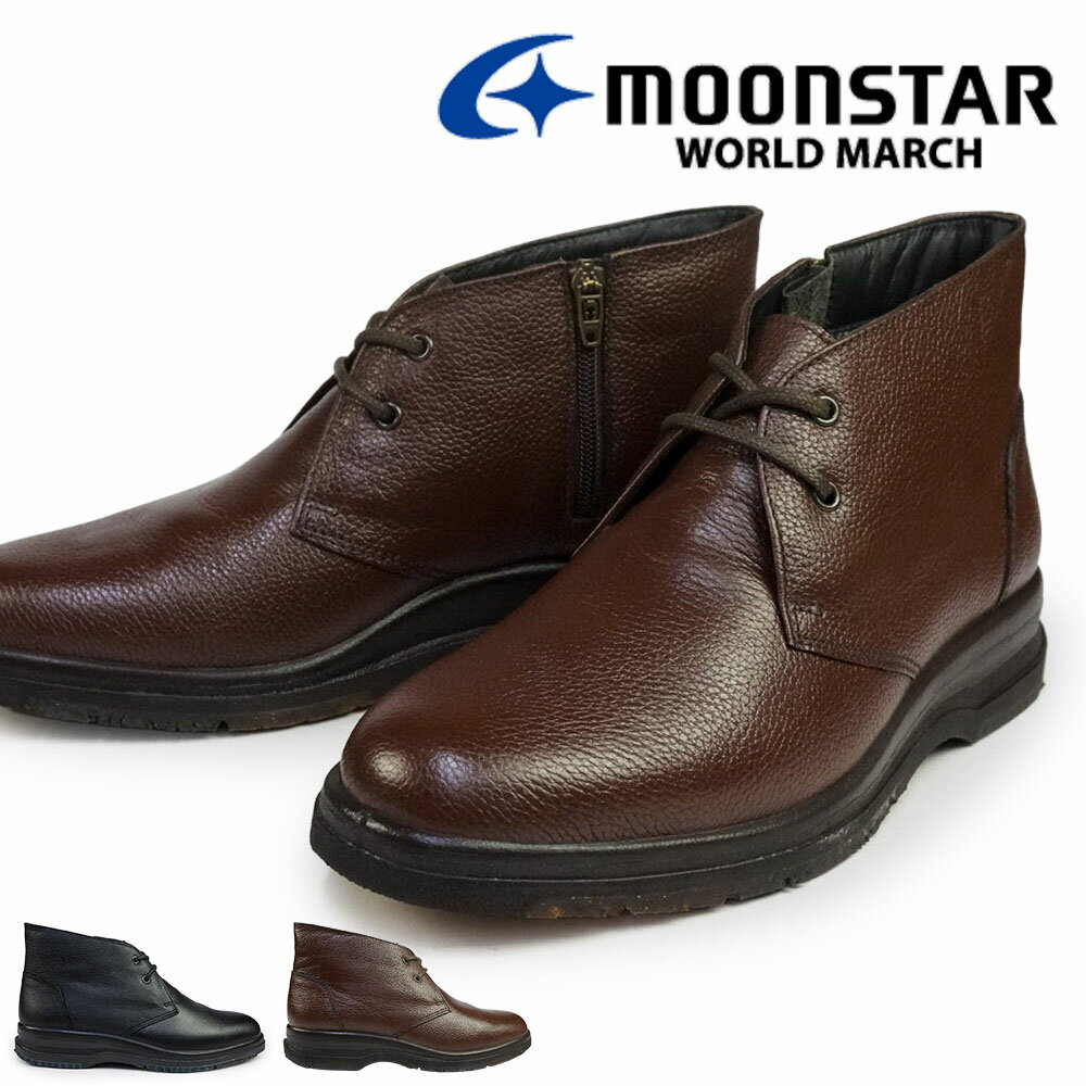 ムーンスター メンズ 防水 防滑 チャッカブーツ レザー 透湿 WM2932TSR 4E 幅広 ワールドマーチ ファスナー