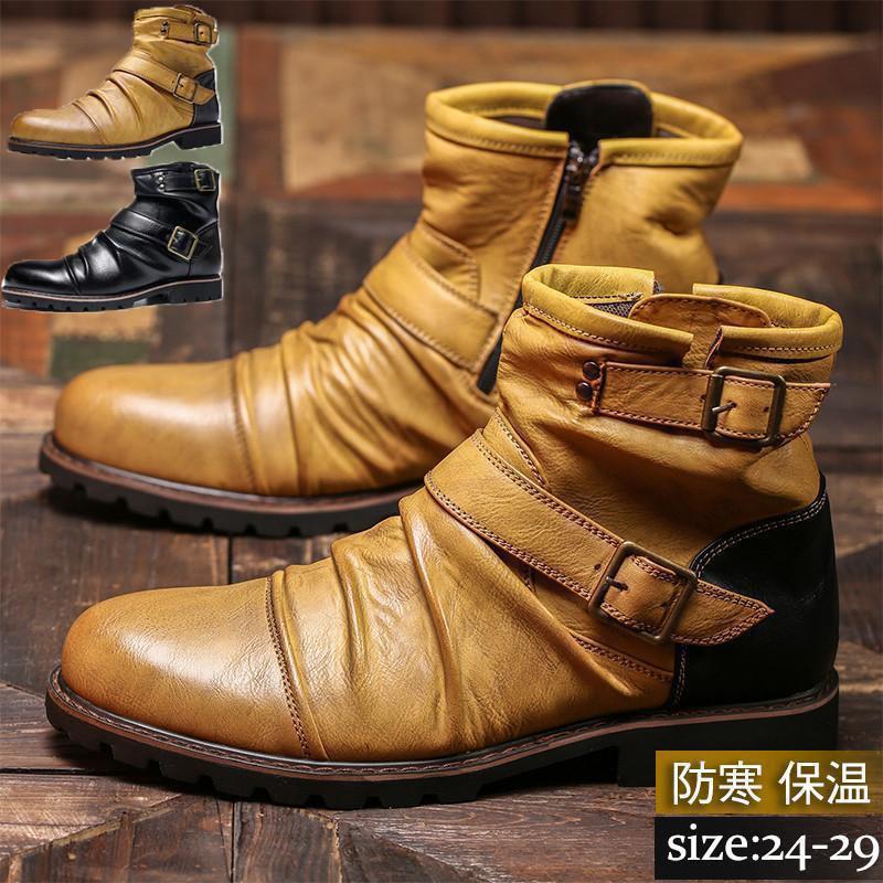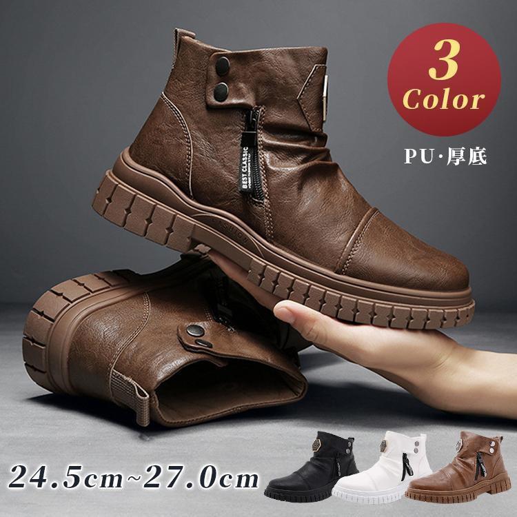 【期間限定10%OFF】ブーツ メンズ ワークブーツ サイドジップ ショートブーツ 厚底 ライダース メンズブーツ 厚底ブーツ レザーブーツ 靴 ハイカットシューズ