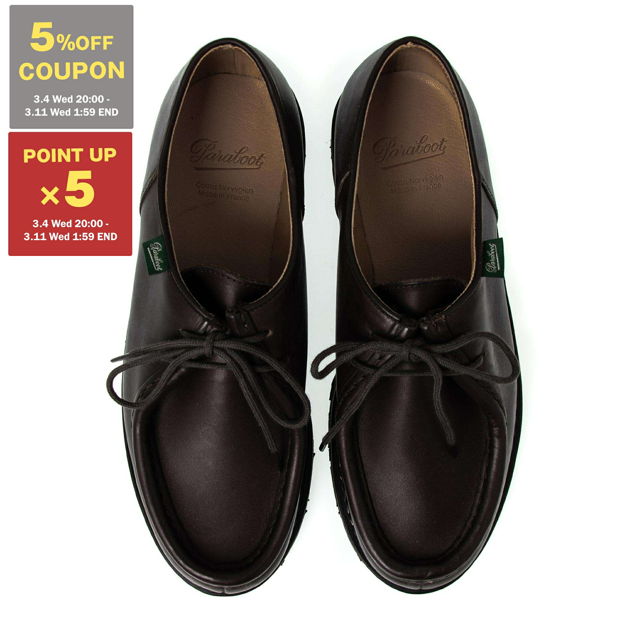 【5%OFFクーポン&ポイント5倍】パラブーツ PARABOOT レザーシューズ チロリアンシューズ MICHAEL/MARCHE II DERBY [ミカエル] メンズ 7156 PLAIN LEATHER