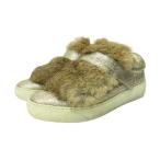 モンクレール MONCLER ラビットファー スニーカー シューズ ベルクロ ファー クラックル加工 レザー 36 23.0cm ゴールドカラー IBO87