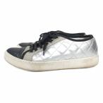 モンクレール MONCLER キルティングレザー スニーカー シューズ 靴 シルバー 36 約23cm IBO88 レディース