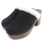 美品□CHANEL シャネル G35368 スウェード ココマーク金具 ボア サボサンダル クロッグサンダル 黒 36C イタリア製 正規品 レディース