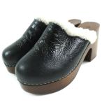 未使用品 HERMES エルメス アース ミュール 36 23cm 靴 サボ スタッズ ウェッジソール サンダル レザー/ムートン ブラック レディース【中古】