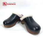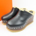 極美品★HERMES エルメス アース スタッズ付 ウェッジソール レザー ムートン サボサンダル ブラック 37 保存袋付 イタリア製 レディース