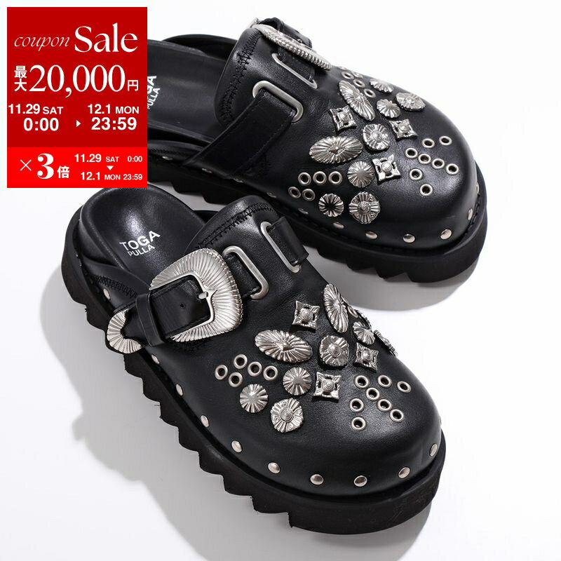 【最大2万円OFFクーポン対象・11/29~12/1限定】TOGA PULLA トーガ プルラ サボ サンダル Eyelet Metal Sabot AJ1058 レディース レザー アイレット メタル スタッズ シューズ 靴 BLACK