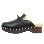 未使用品 HERMES エルメス アース ミュール 36 23cm 靴 サボ スタッズ ウェッジソール サンダル レザー/ムートン ブラック 無刻印 レディース【中古】