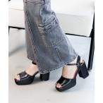 サンダル グリッター×シアー ドッキング アンクル ストラップ サンダル レディース