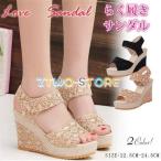 サンダル ウェッジソール レディース レース柄 ブラック ベージュ 結婚式 パーティー ストラップ マジックテープ ハイヒール ストーム 歩きやすい