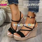 サンダル レディース ウェッジソール ハイヒール オープントゥ クロスベルト 9cmヒール 疲れにくい 黒 カジュアル 履きやすい 春 夏