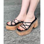 サンダル 「R&E」コードクロスストラップ厚底ウェッジソールサンダル レディース