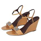 未使用品☆HERMES エルメス レジェンド カーフレザー ゴールド アンクルストラップ ウェッジソール サンダル 34 伊製 レディース