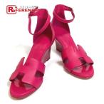 HERMES エルメス Hロゴ レジェンド ウェッジソール サンダル レザー ピンク レディース【中古】