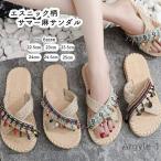 サンダル レディース 歩きやすい 50代 フラット ビジュー リゾート ぺたんこ エスニック 爆買