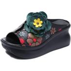 サンダル ウェッジソール 花柄 レディース 6cmヒール 厚底 ミュール 滑らない 軽量 おしゃれ t エスニック パーティー 痛くない