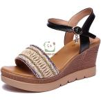 サンダル レディース ウェッジソール 厚底 通気 やわらかい 履きやすい 軽量ミュール ビーチ 歩きやすい エスニック風 滑り止め 軽量
