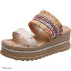 レディース エスニック ビーチサンダル ボヘミアン風 ファッション 外履きスリッパ リゾート 厚底サンダル ウェッジソール 柔らかい 軽量