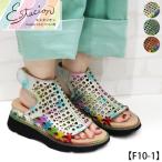 【500円OFFクーポン配布中!セール】 Estacion エスタシオン ミュールサンダル レディース 本革 牛革 レザー エスニック調 花 フラワー カラフル ウエッジソール 幅広 3E相当 マジックテープ 足に優しい 歩きやすい 痛くない コンフォート 588-L3