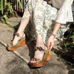サンダル レディース 厚底サンダル カジュアル 本革 袴用 通学 通勤 歩きやすい 通気性 エスニック サマーブーツ オープントゥ ウェッジヒール ブーツサンダル