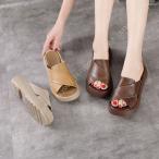 サンダル レディース シューズ エスニック 革 レザー 夏 フラット 柔らかい カジュアル オープントゥ ブラウン ベージュ