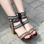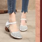 レトロ エスニック サンダル レディース 革 太めヒール 厚底 サンダル 歩きやすい 厚底 靴 アウトドアシューズ 安定感 夏 サンダル シンプル ローヒール