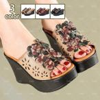 サンダル レディース ウェッジソール 花 エスニック 民族風 コンフォート クッション カジュアル 春 夏 つっかけ ミュール サンダル ストラップ 歩きやすい