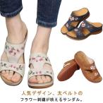 レディース サンダル コンフォートサンダル ベルトサンダル おしゃれ 歩きやすい ベルトサンダル ミュール 厚底 ウェッジソール 花柄 まるい つっか