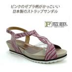 【40%オフ】サンダル レディース 23.5cm 本革 ストラップ FIZZ REEN フィズリーン 6102 ピンク ゼブラ柄 展示処分品 日本製 11,880円の品 セール