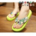 ビーチサンダル ビーサン サンダル 足が痛くなりにくいレディース厚底トングサンダル ローヒール ウェッジソール 花柄 ゼブラ ヒョウ柄滑り止め 美脚