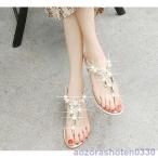 レディース靴 トングサンダル ビジュー ビーチサンダル ぺたんこ ストラップ サンダル 美足 履きやすい お呼ばれ