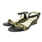 コールハーン COLE HAAN サンダル シューズ ヒョウ柄 ハラコ レザー 6B 23.0cm ベージュ 黒 ブラック 0907 ■YHS2 レディース