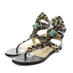 COLE HAAN コールハーン ハラコ サンダル レオパード ブラック系 8 【中古】レディース