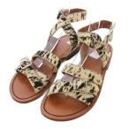 【中古】未使用 CELINE セリーヌ アニマル柄 ハラコ ローヒール サンダル 36.5 23.5cm相当 ベージュ×ブラウン レディース Luxs ブランド古着のリュクス