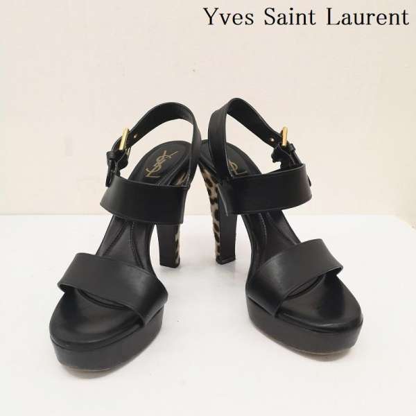 イヴサンローラン リヴゴーシュ サンダル ハラコ レオパード レディース 24.5cm【USED】【古着】【中古】50140480