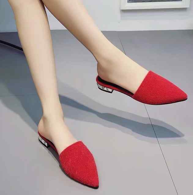 サンダル ミュール レディース 春夏 ハラコ ポインテッドトゥ クローズドトゥ ローヒール ぺたんこ 普段使い 無地 おしゃれ